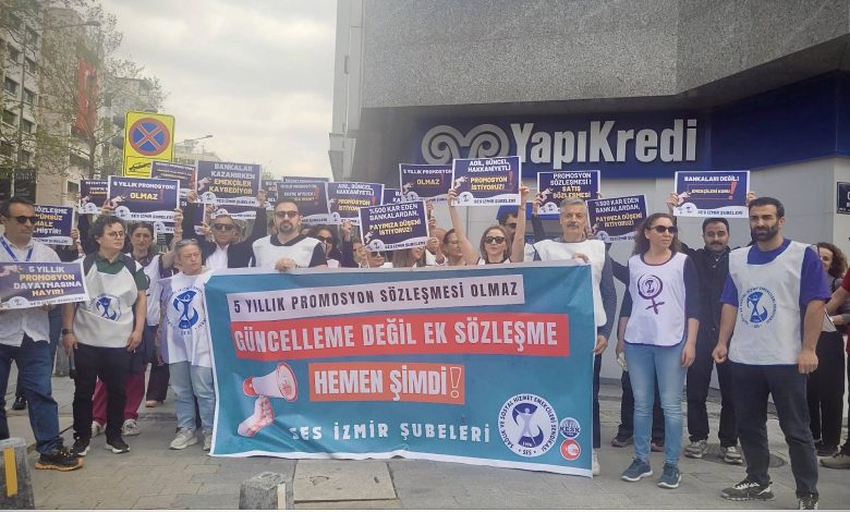 Devamını Oku »Sağlıkçılar Banka Önünden Seslendi: “Promosyon Hakkımızı İstiyoruz” SES İzmir Şubeleri yaptığı açıklamada, anlaşmalı banka Yapı Kredi Bankası önünden yetkililere seslendi,…